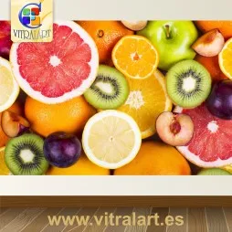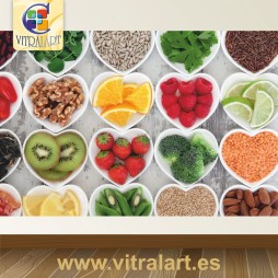 Fotomural con temáticas de comida o alimentación. Naranjas, hielos, huevos, macedonia, pasta, especias, bodegones, vinos, fresas, leche, cafés, botellas, limas, limones, frutos secos. Ideales para decorar cocinas, bares, restaurantes y cafeterías.