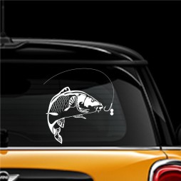 Pegatina para los amantes de la pesca, podrás instalar este fantástico diseño de una carpa en la luna trasera de tu coche o bien en la carrocería.