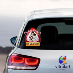 Adhesivo para el coche Flamenca A Bordo, vinilo para colocar en el cristal trasero por fuera del coche, clásico adhesivo bebé a bordo pero tematizado e ilustrado con un diseño original y exclusivo.