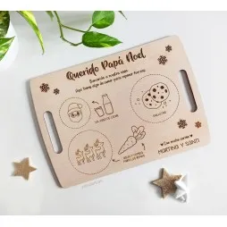 Bandeja de madera personalizada con la que dar la bienvenida y preparar con ilusión un tentempié a los Reyes Magos y Papá Noel, para que puedan descansar y reponer energía en esta larga y mágica noche.