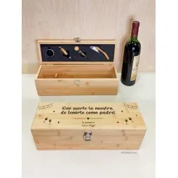 - Set de vinos premium acabado en madera bambú. Accesorios de acero inox. Incluye sacacorchos, cortacápsulas, tapón, dosificador y recogegotas. Presentado en estuche individual de madera de bambú, con compartimento interior para botella de vino "no incluida".