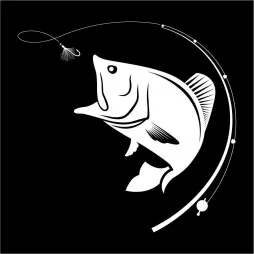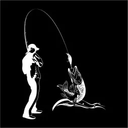 Pegatinas para tu coche relacionadas con el mundo de la pesca. La pegatina de un pescador, un black bass, una trucha y muchos otros más.